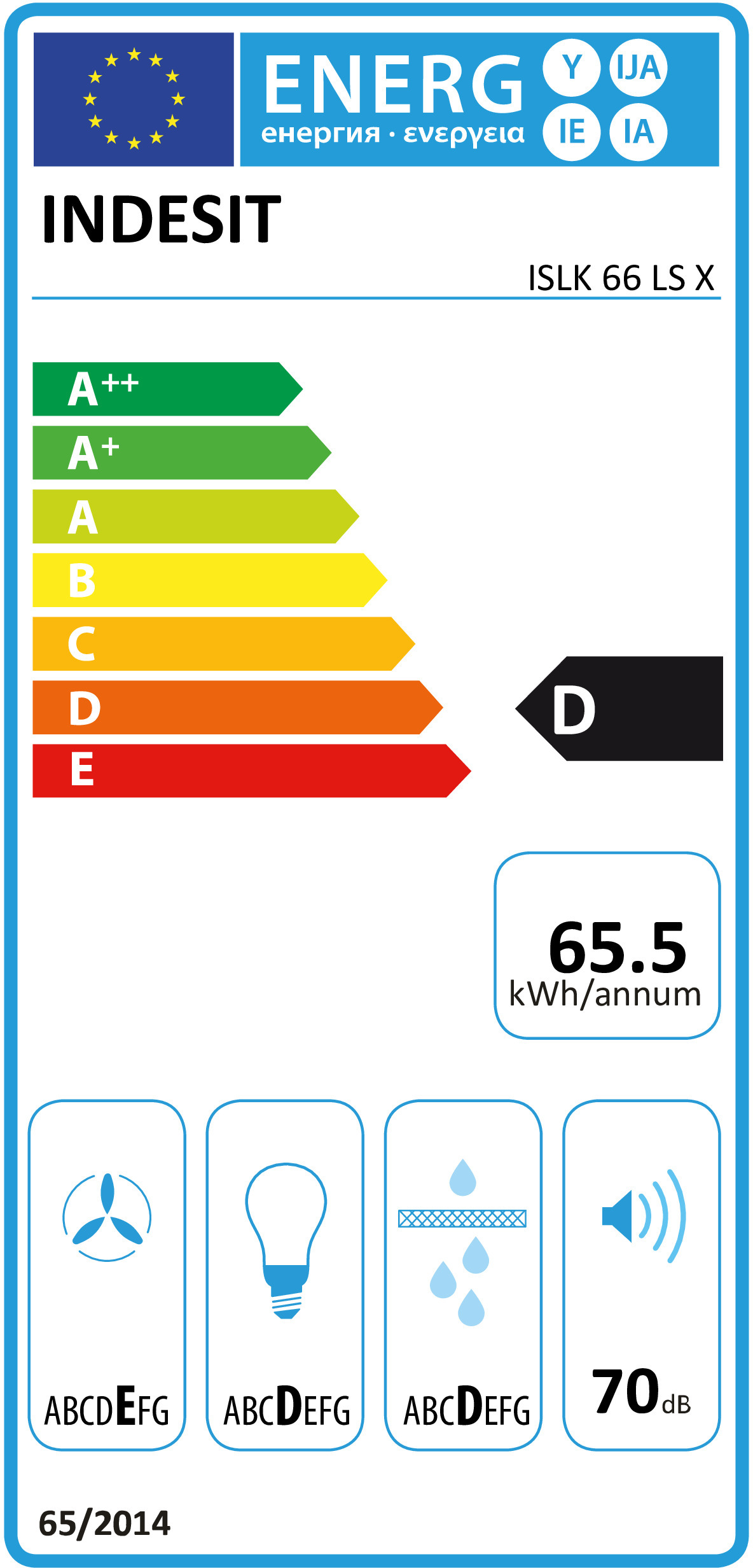 Aspiração/Extracção: 638 m3/hora / Ef. fluído dinâmica: D / Ef. iluminação: A