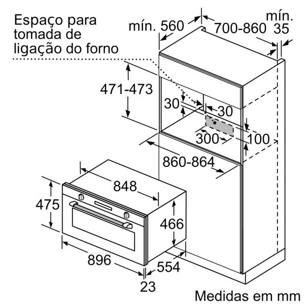 Forno: Multifunções / Capacidade do Forno: 85 Litros / Nº de Programas: 10 P