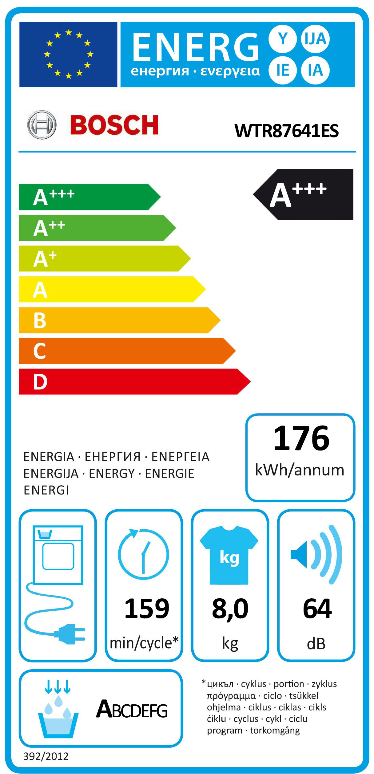 | Referência | 35430401 | | Capacidade Secagem | 8 Kg | | Sistema de Secagem | Condensação | | Classe Energética | A++ | | Altura | 84,2 cm | | Largura | 59,8 cm | | Profundidade | 59,9 cm | | Cor | Branco | | Características | Display LED Bomba de calor Indicação do tempo restante, estado do programa e fim diferido até 24 horas Controlo eletrónico de secagem: sensor de humidade Programas especiais Funções: menos ferro, secagem delicada, ajuste de secagem Função Pausa+carga Iluminação interior mediante LEDs Porta de vidro Bloqueio de segurança para crianças | | Acessórios Incluídos | Kit de ligação ao esgoto | | Garantia | 2 anos |