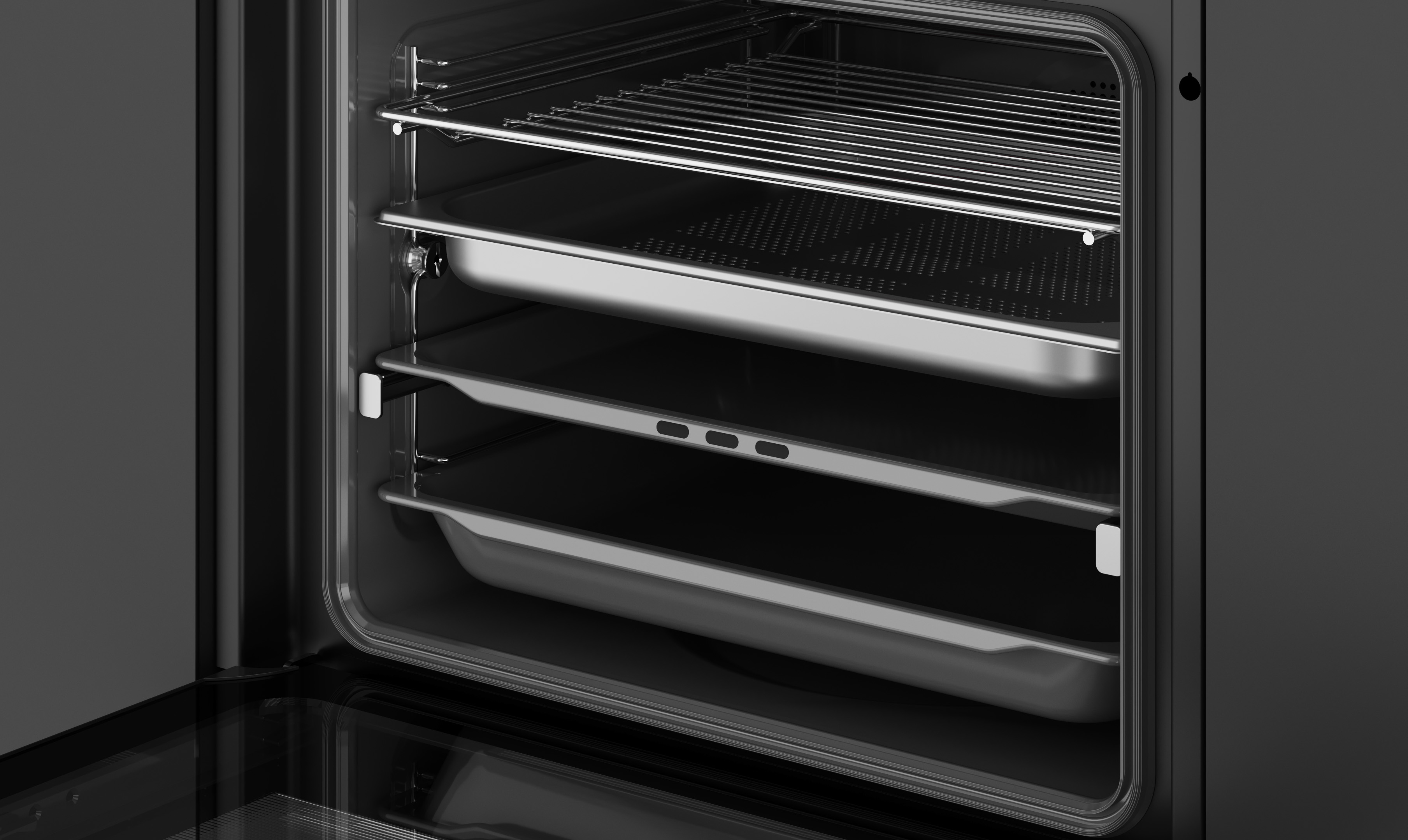 Suportes cromados com sistema de 1 guia extraível Plus-Extension, 5 alturas de cozinhado