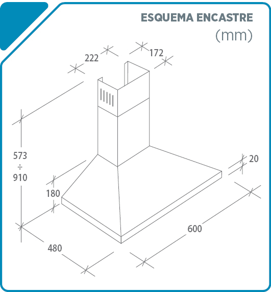 Aspiração/Extracção: 480 m3/hora / Ef. fluído dinâmica: B / Ef. iluminação: A